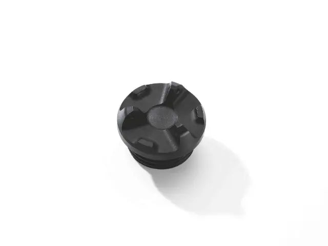 • The black-anodized oil filler plug with tamper-proof closure is milled from aluminum, visually underscoring the sporty flair.