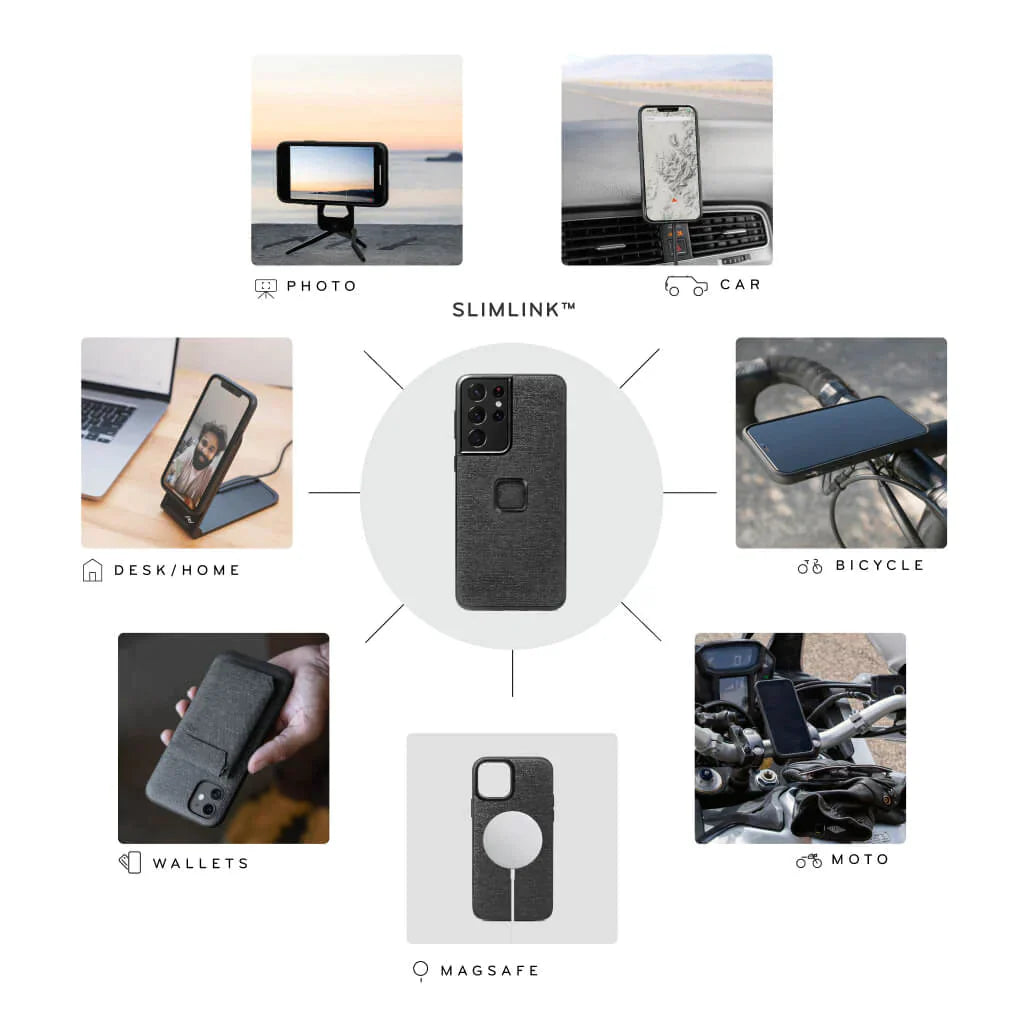 SlimLink™ Mounting System: Features a built-in ceramic locking ring that allows the phone to connect to all Peak Design Mobile mounts and accessories.